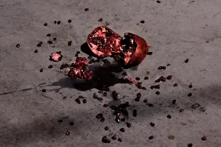 Bien plus qu’un simple fruit éclaté au sol, cette photographie révèle des fragments du parcours intime de son autrice. Cette oeuvre de Stacy Arezou Mehfar est issue de la série "The moon belongs to everyone" présentée aux Champs Libres dans le cadre du Glaz Festival.