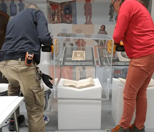 Durant ses dernières semaines, les structures et les vitrines ont été démontées. Plusieurs éléments scénographiques qui seront remaniés ont été déplacés. Le mobilier qui ne pouvait pas être déplacé a été emballé pour le protéger et éviter toute dégradation liée au chantier.